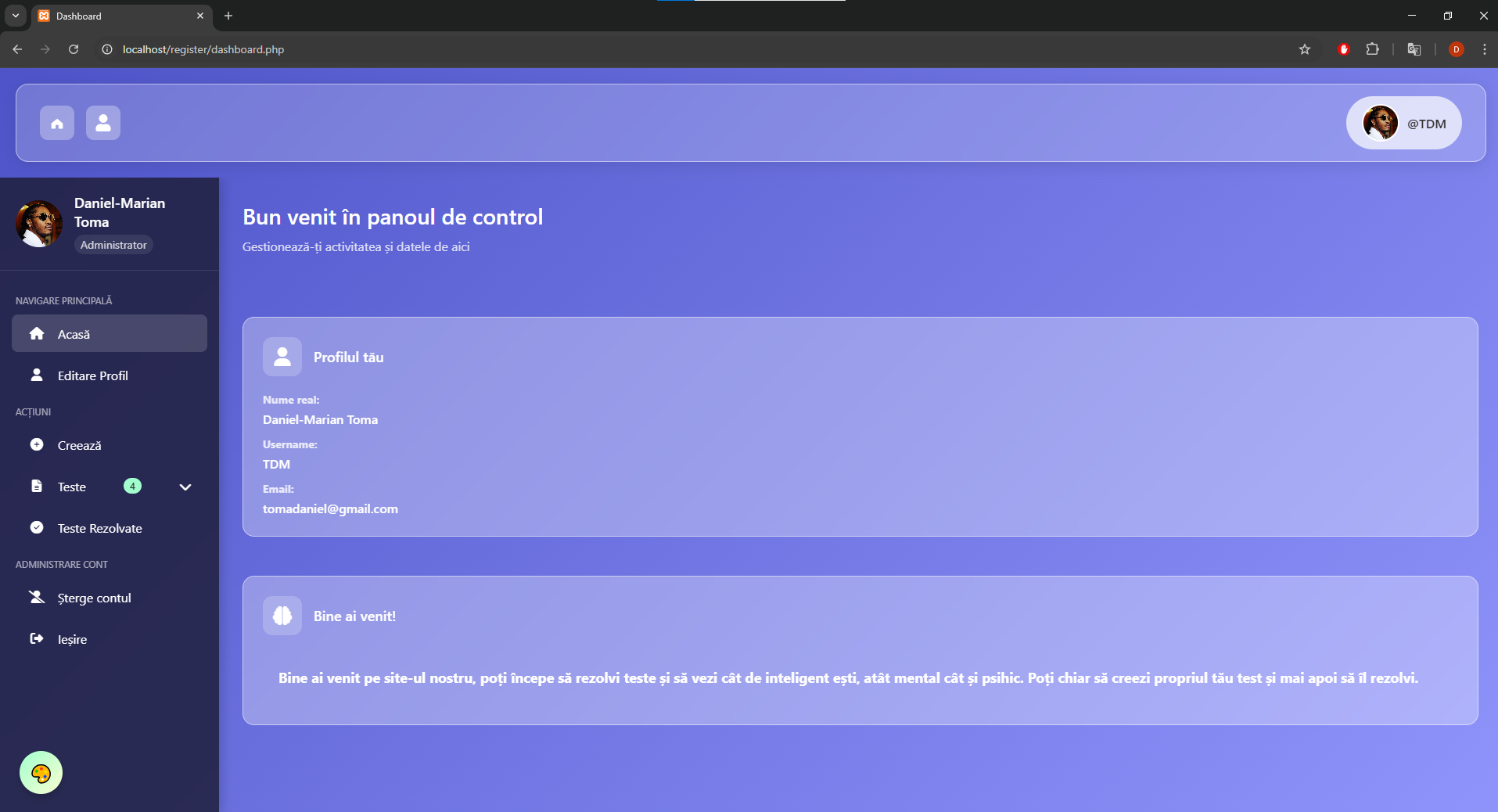 - Homepage: https://testeaza-tiinteligenta.infinityfreeapp.com/home.php